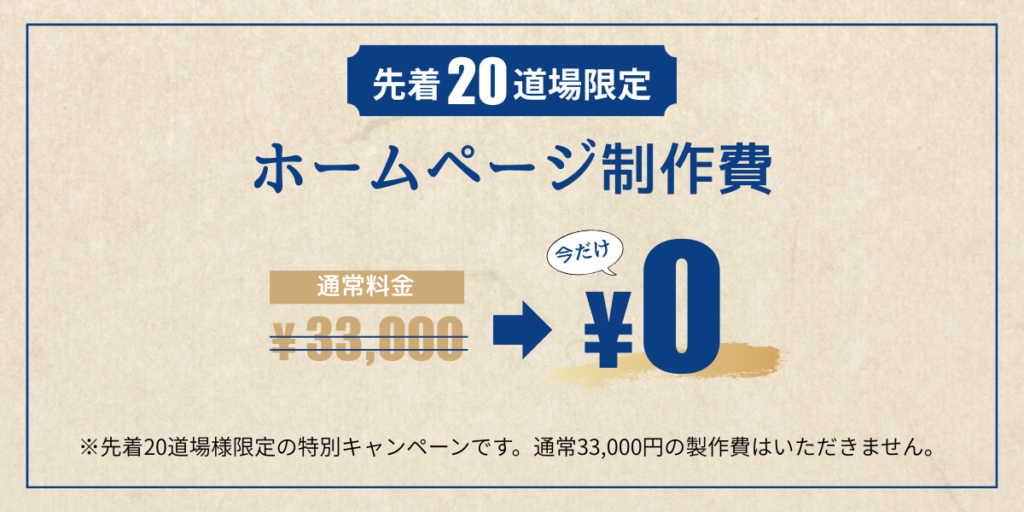 ただいまキャンペーン実施中!先着20道場は制作費0円!!