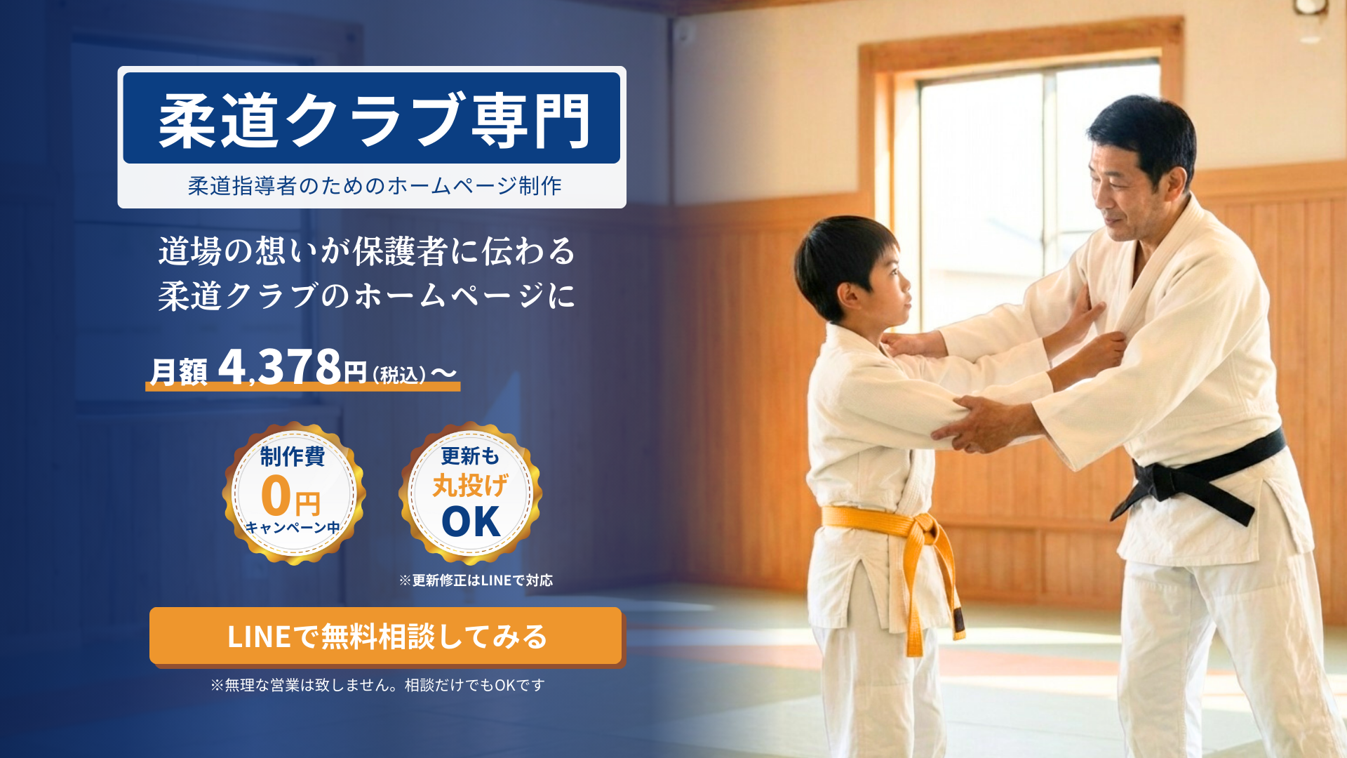 柔道クラブの基本的な構成(クラス紹介・指導方針・料金案内・指導者紹介・体験/入会案内・アクセス(Googleマップ)・お問い合わせ(Googleフォーム)など)以外に、独立したページを追加する場合の料金です。